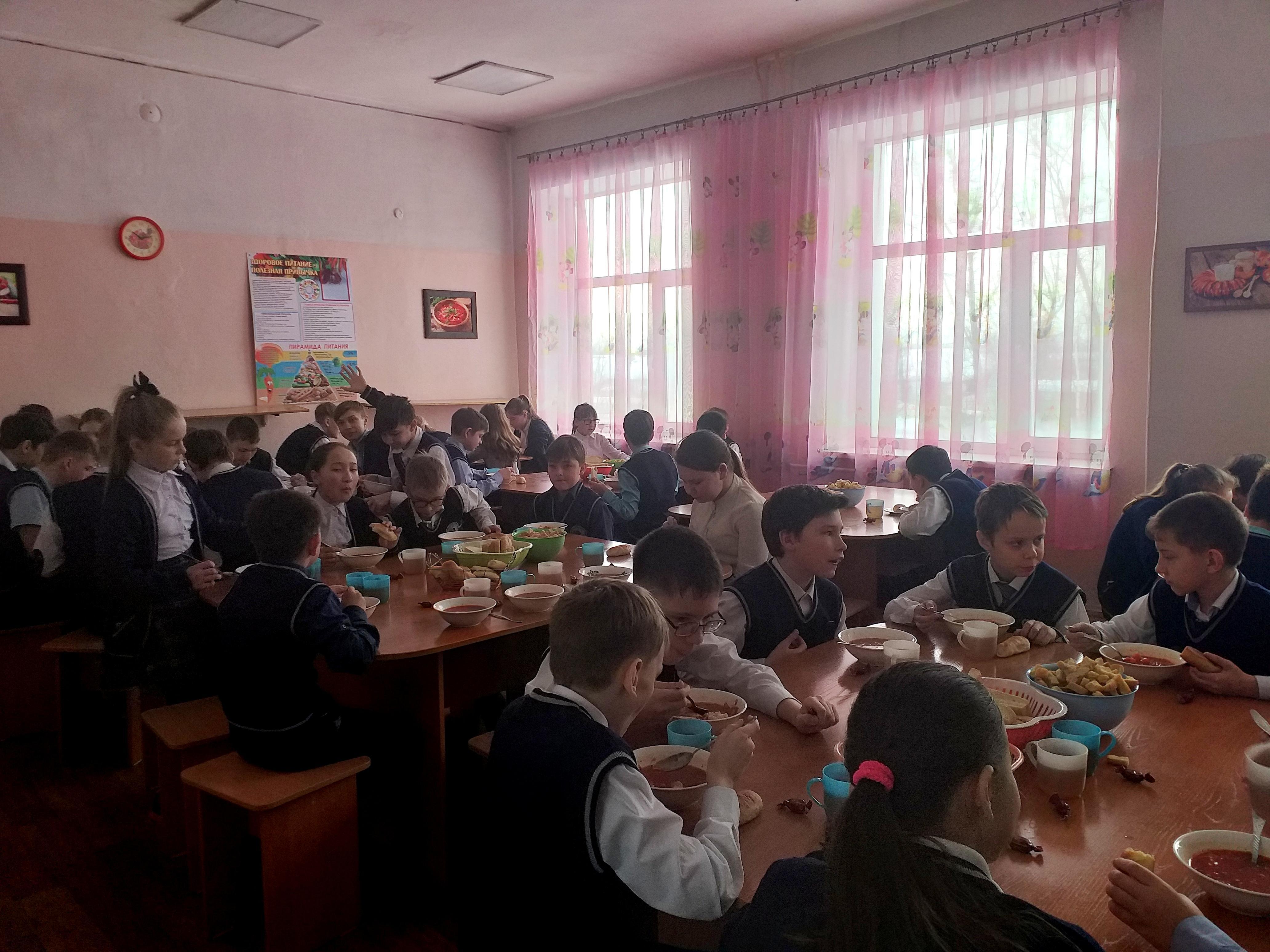 2020 жылдың қаңтар айында мемлекеттік көрсетілетін қызмет бойынша мектеп асханасынан тегін тамақтанатын оқушылар саны 37, оның ішінде: азқамтылған отбасынан –31; қамқорлықтағы оқушылар саны - 3; мүгедек балалар - 3. Оқушылар асханадан бір адамға 375 теңге есебінде тамақтанады. Асханада ас мәзірінің түрлері мол.