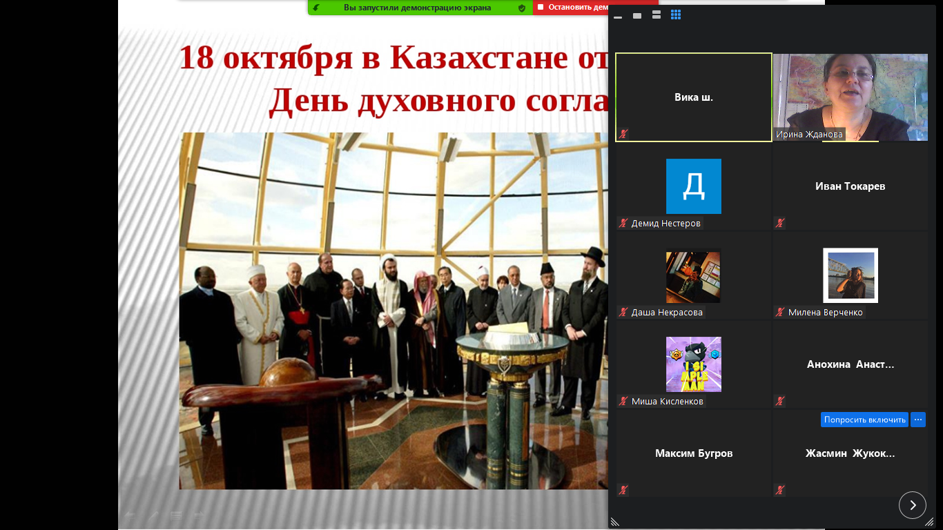 18 октября - "День духовного согласия". В период с 12 по 19 октября в школе прошли мероприятия посвященные этой дате.10 октября 2020 года в режиме онлайн, в нашей школе были проведены открытые уроки на занятиях факультативного курса "Светскость и основы религиоведения" в 9 классах.