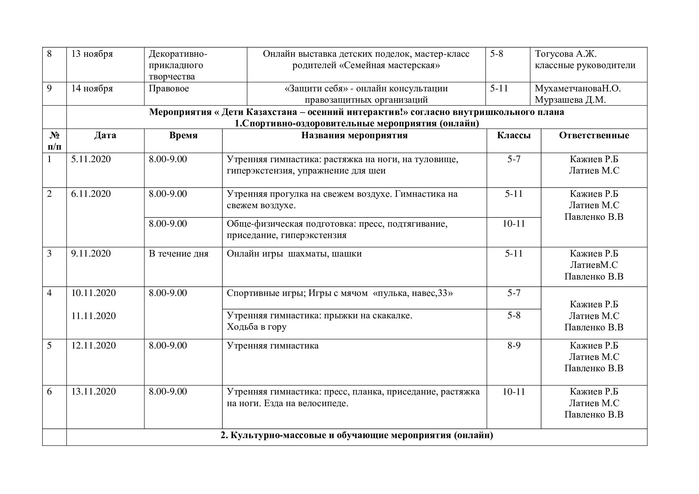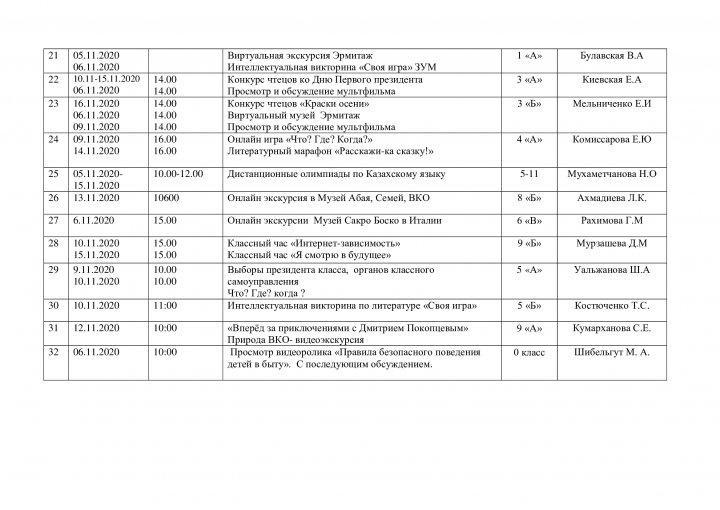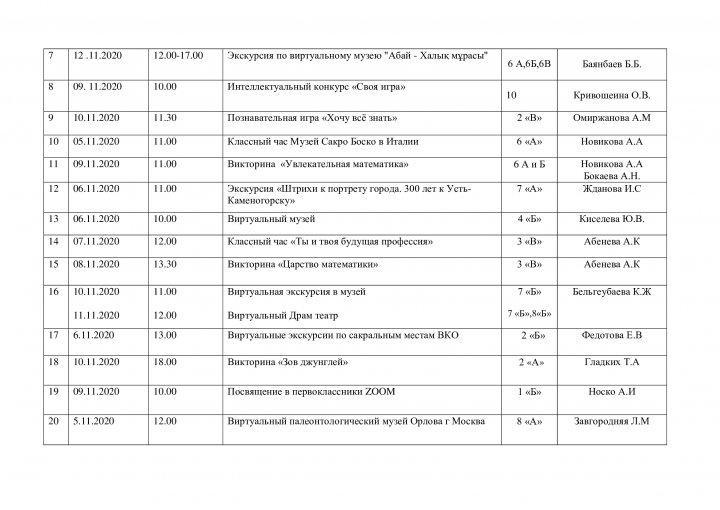 2020-2021 оқу жылының күзгі каникул кезінде 05.11.2020 бастап 14.11.2020 дейін оқушыларды жұмыспен қамтудың желілік кестесі. Сетевой график занятости учащихся во время осенних каникул 2020-2021 учебного года с 05.11.2020 по 14.11.2020