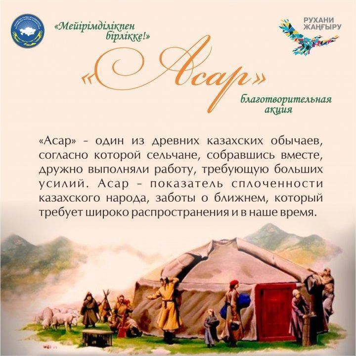 2020 жылдың 5 қарашасында «Қазақстан балалары-күзгі интерактив» күзгі каникулына арналған іс-шаралар жоспарына сәйкес мектепте «Асар» акциясы ұйымдастырылды, мектеп мұғалімдері, сондай-ақ Защита шағын ауданында тұратын демеушілер оған белсенді қатысты. Көп балалы отбасыларға азық-түлік себеті және бірінші кезекте қажетті заттар түрінде көмек көрсетілді.
