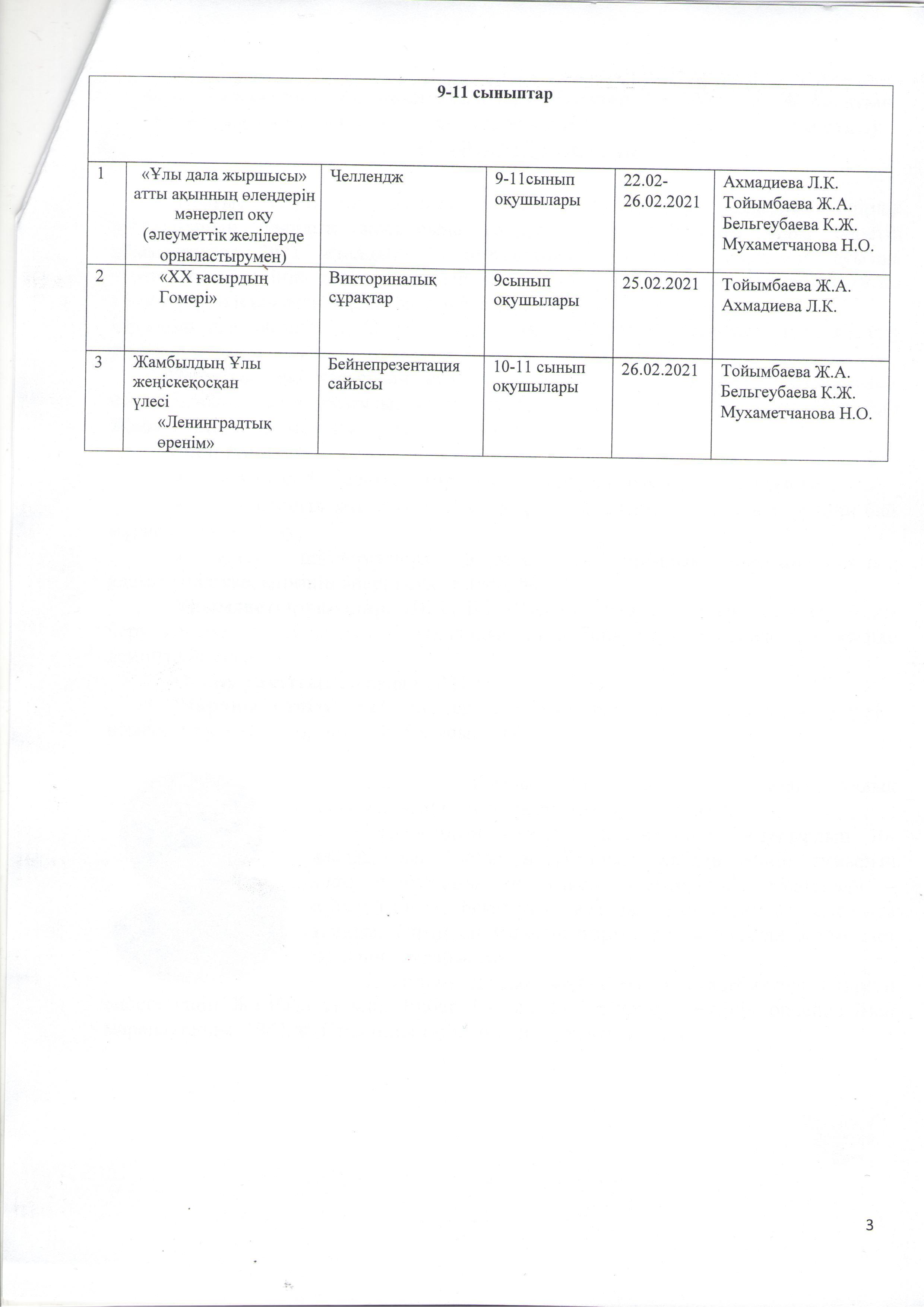 22 ақпан 2021 0 1 2 3 4 5 Жамбыл Жабаевтың 175 жылдығына арналған "Ұлы даланың жыршысы" атты бірыңғай күн аясында жүргізілген іс-шаралар