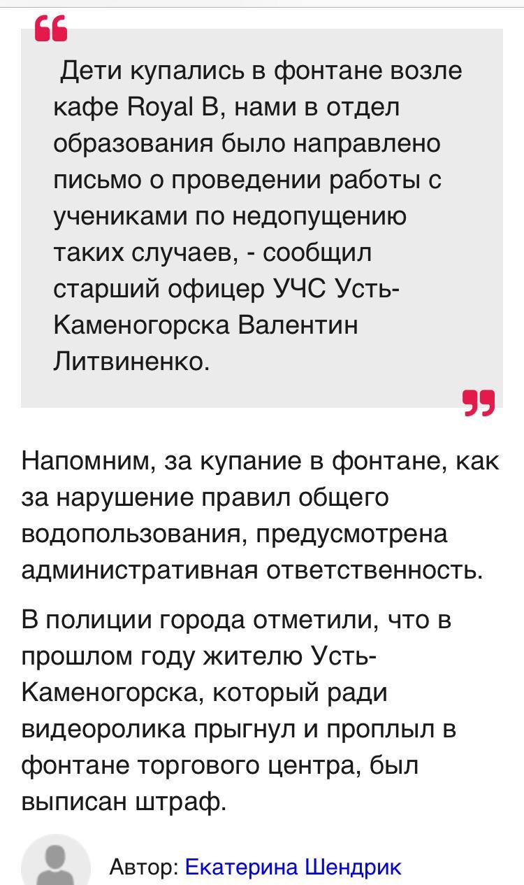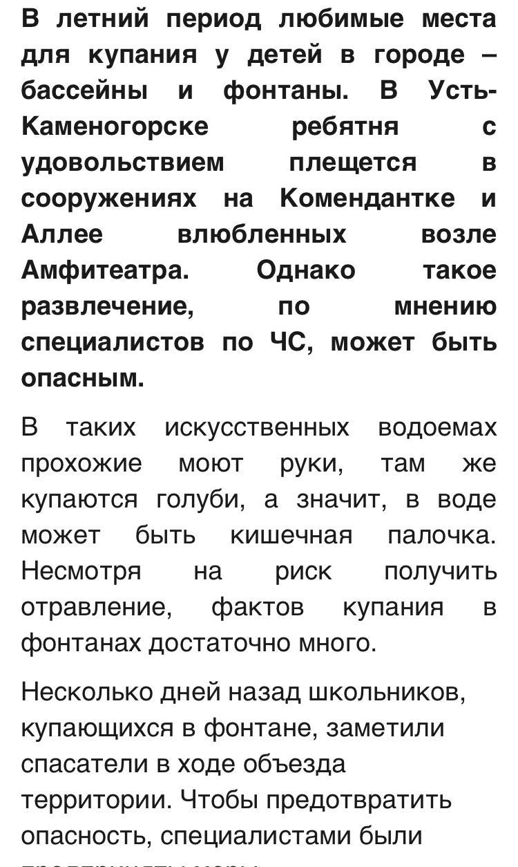 Дети в Усть-Каменогорске рискуют получить отравление, купаясь в фонтане. » Коммунальное государственное учреждение "Общеобразовательная школа №2" акимата г.Усть-Каменогорска