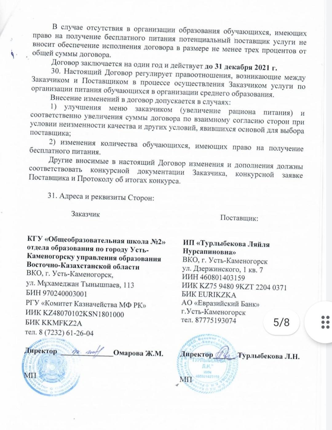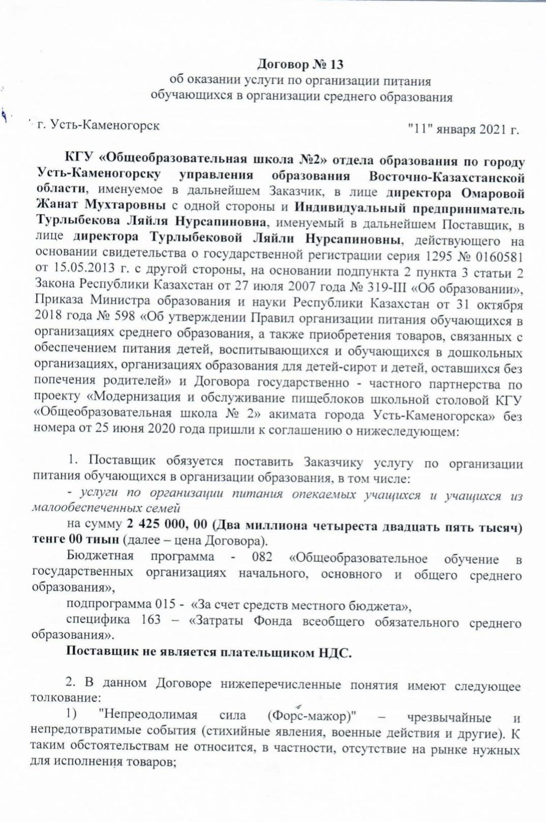Договор об оказании услуги по организации питания обучающихся » Коммунальное государственное учреждение "Общеобразовательная школа №2" акимата г.Усть-Каменогорска