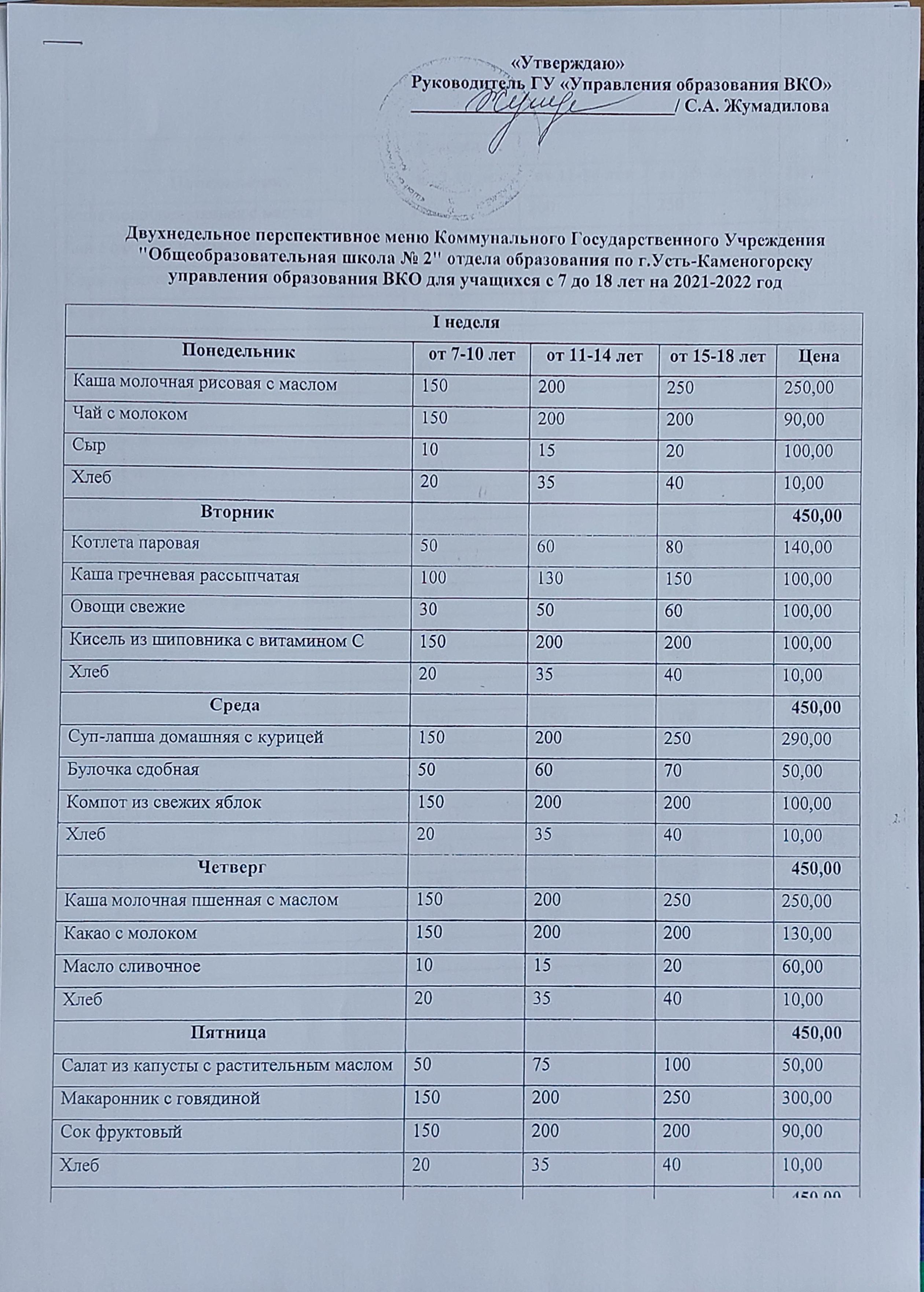 03 қыркүйек 2021 0 1 2 3 4 5 Двухнедельное меню КГУ "ОШ №2" для учащихся с 7 до 18 лет на 2021-2022 год