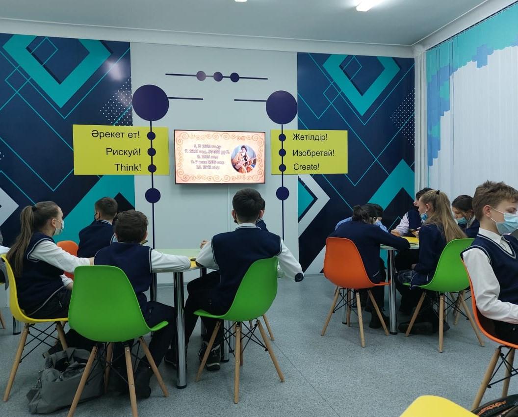 Сегодня учащиеся 7а класса в составе 15 человек посетили Дворец творчества школьников и приняли участие в викторине под названием "Джамбул Джабаев, жизнь и творчество поэта". Участники были поделены на группы а так же самым активным были вручены грамоты.