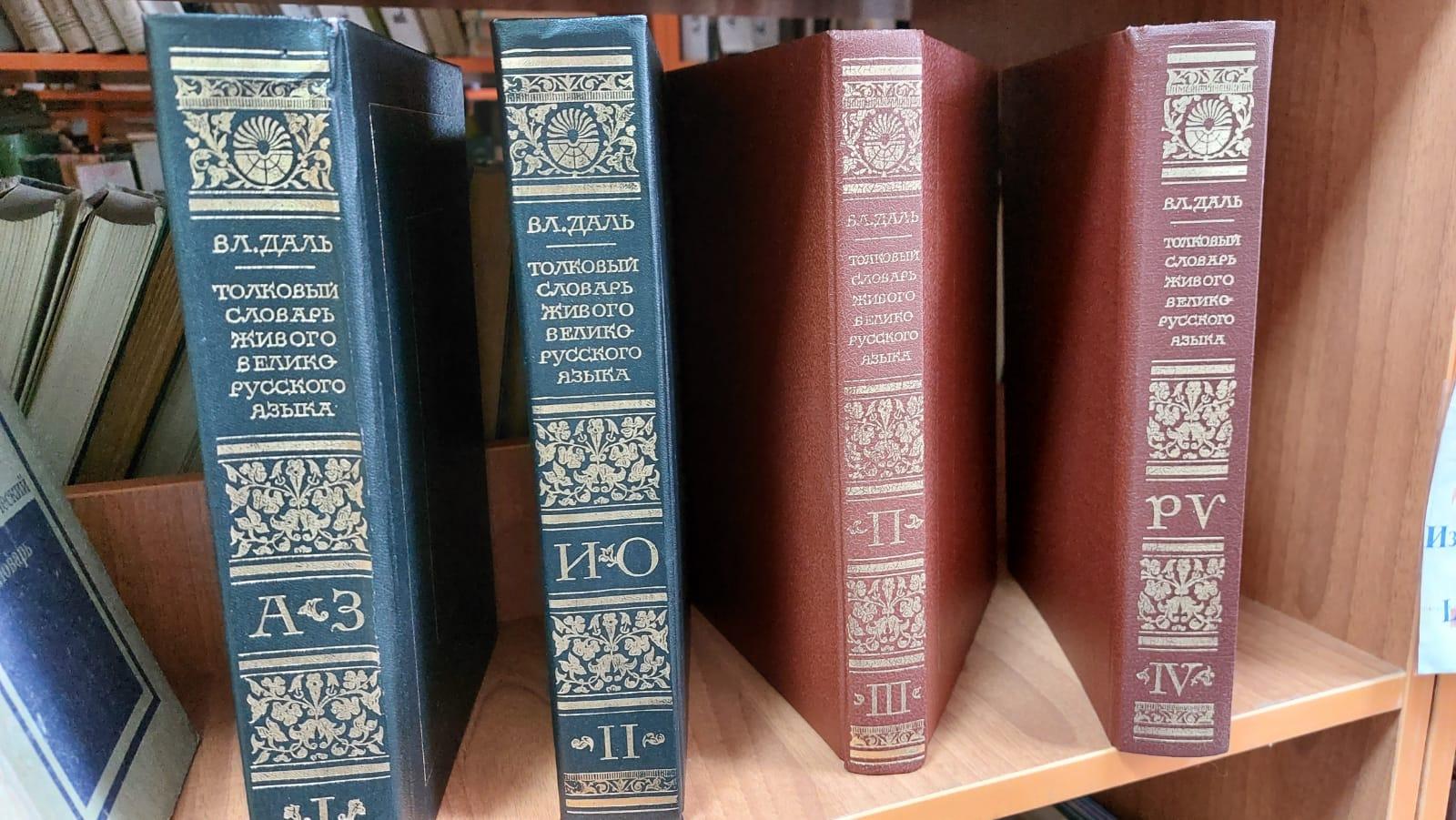 Жительница микрорайона "Защита" подарила школьной библиотеке толковый словарь Даля в 4 томах.