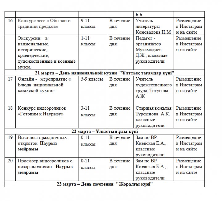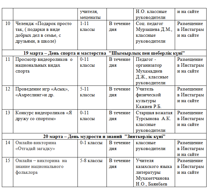 План празднования "Наурыз мейрамы" » Коммунальное государственное учреждение "Общеобразовательная школа №2" акимата г.Усть-Каменогорска