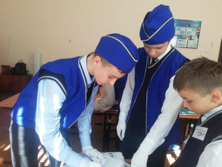 Бүгін мектебізде жас инспекторлар отрядымен бірге ,аға тәлімгер Шенберг А.В. маршурттық беттерді тексерді. Сегодня в школе отряд юных инспекторов дорожного движения совместно со старшей вожатой Шенберг А.В. провели рейд по проверке маршрутных листов школьников.