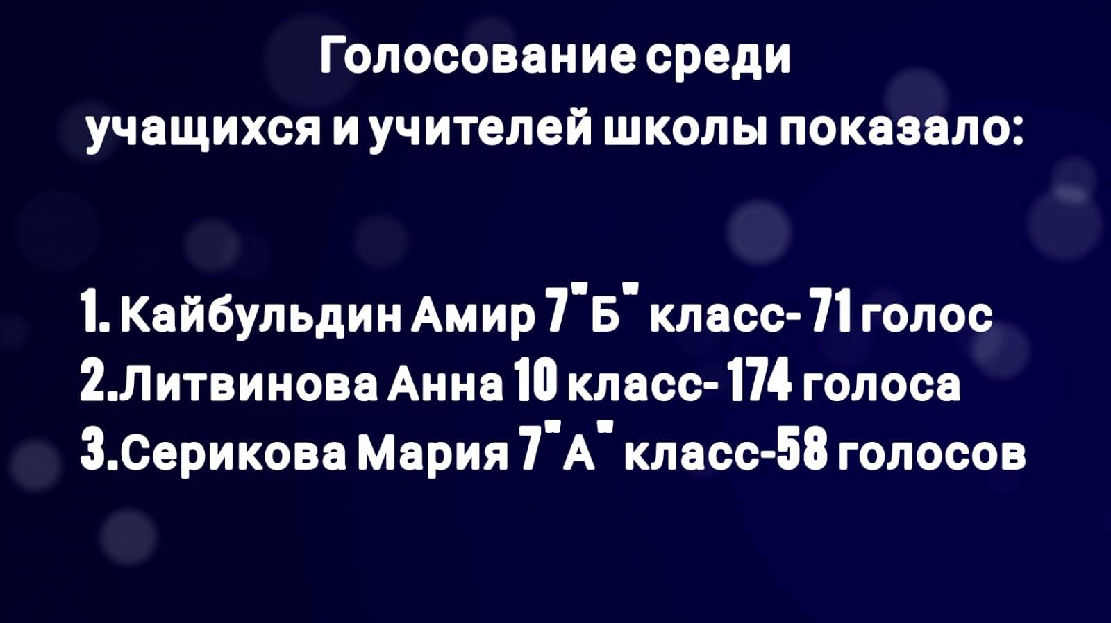 "Экон" мектепішілік өзін-өзі басқару президентінің дауыс жинау қорытындысы. Результаты голосавания в президенты школьного ученического самоуправления Республика Экон