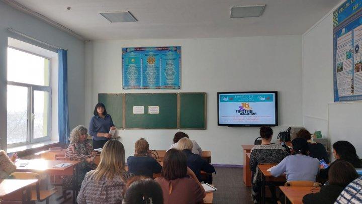 Бүгін педагогикалық кеңесте кәсіподақ комитетінің төрағасы Булавская В.А. мұғалімдерді «Гендерлік зорлық-зомбылыққа қарсы 16 күндік белсенділік» шарасымен таныстырды, Өскемен қаласындағы қолдау көрсету қызметтері мен байланыс орталығы туралы айтып берді.