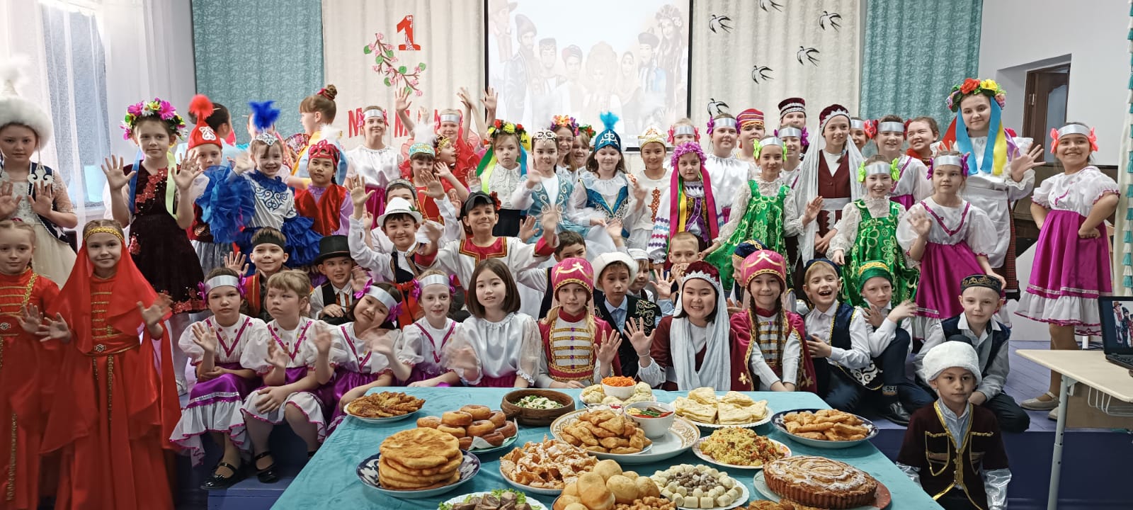 Сегодня состоялся фестиваль "Мы под единым шаныраком", посвященный Дню единства народов Казахстана. Учащиеся 1-4 классов представляли разные народы проживающие в Казахстане. Дети познакомили нас не только с культурой но и с национальной кухней, танцами и песнями.