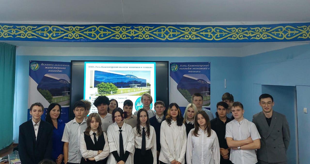 2025 жылғы 13 қаңтарда 9-сынып оқушылары өңірдің білім беру нарығында - Өскемен экономика және қаржы колледжінде өзінің бәсекеге қабілеттілігі мен сұранысын растайтын заманауи оқу орнына барды. Экскурсия барысында балаларды колледжде алуға болатын негізгі мамандықтармен таныстырды, түсу ережелері, сондай-ақ құжаттарды тапсыру процесі туралы әңгімеледі. Оқушылар экономика, қаржы және басқа да сұранысқа ие салаларда одан әрі оқу және мансап мүмкіндіктері туралы білді. Бұл мектепті бітіргеннен кейін олардың алдында қандай перспективалар ашылатынын көрнекі түрде көруге және болашақ мамандықты саналы түрде таңдауға тамаша мүмкіндік болды. Экскурсия аясында колледж мен Halyk Bank-тен қызықты викторина өткізіліп, жеңімпаздар естелік кәдесыйлар алды.