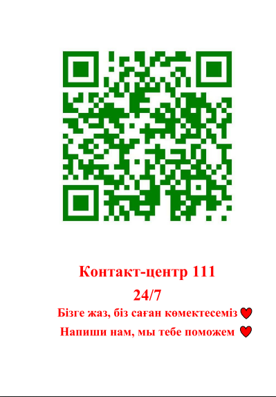 Егер кішкентай баланың қараусыз қалғанын, оған қауіп төніп тұрғанын байқасаңыз, балаға немесе әйелге қатыгездік көрсету, зорлық-зомбылық көрсету, құқықтарының бұзылуы мүмкін екенін білсеңіз, 111 нөміріне хабарласуыңызды сұраймыз.