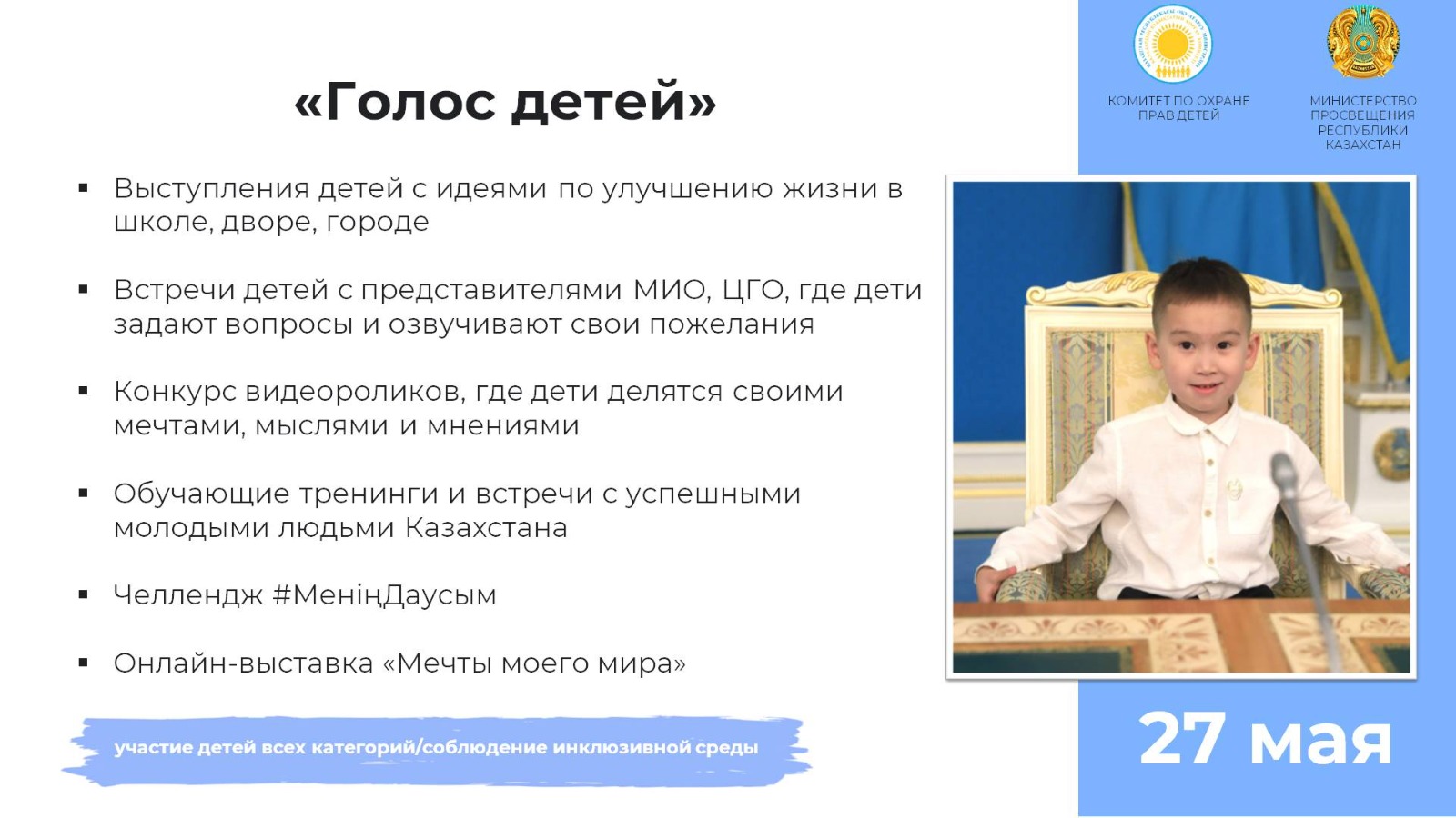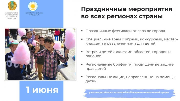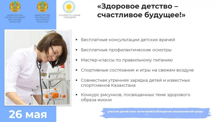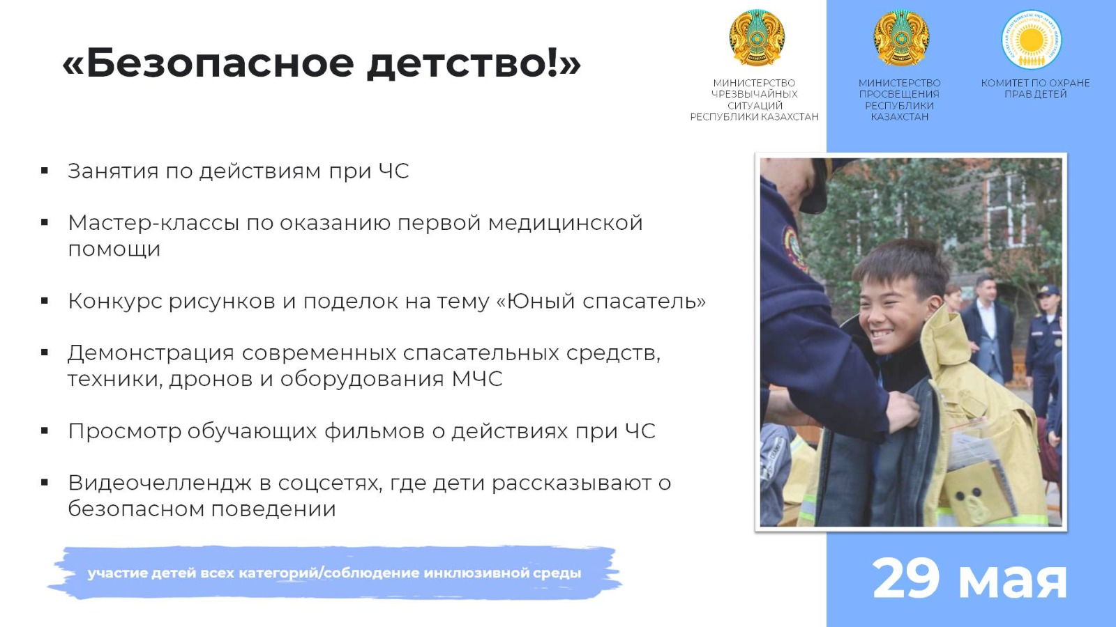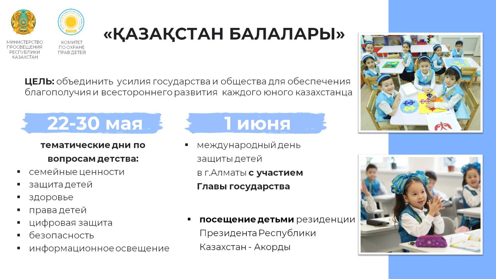 22-30 мамыр аралығында 1 маусым – ХАЛЫҚАРАЛЫҚ балаларды қорғау күніне арналған іс-шаралар өтеді.