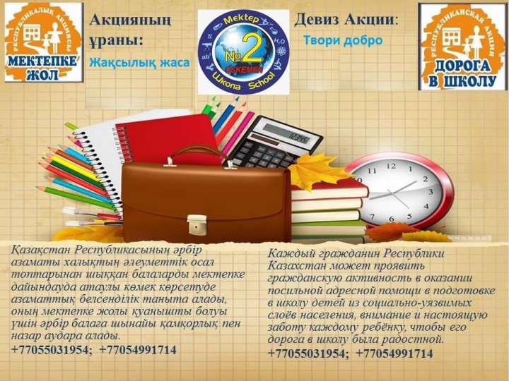 Каждый гражданин Республики Казахстан может проявить гражданскую активность в оказании посильной адресной помощи в подготовке в школу детей из социально-уязвимых слоёв населения, внимание и настоящую заботу каждому ребёнку, чтобы его дорога в школу была радостной.