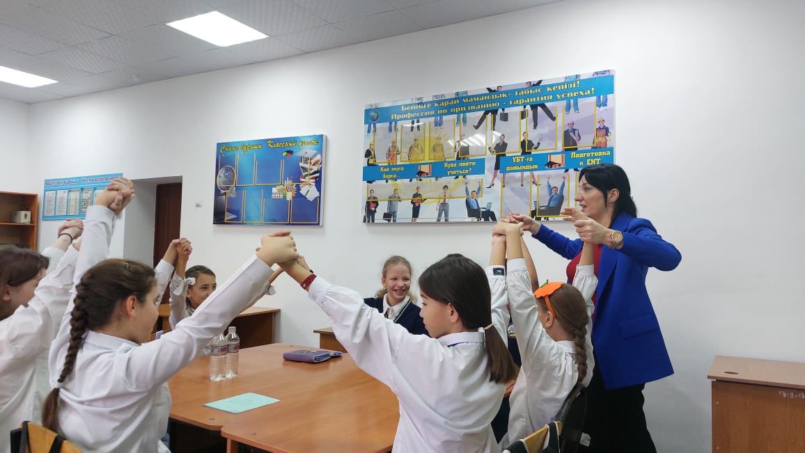 16 сентябрьте мектепте 5- сынып оқушылары үшін жаңа сыныпқа бейімделуге арналған сабақ өтті. Психолог Ольга Викторовна балаларға бейімделудің қалыпты процесс екенін түсінуге көмектесіп, толқу мен күйзеліспен қалай күресуге болатынын айтып берді. Тренинг аясында балалар командада жұмыс істеуді үйреніп, алаңдаушылықтарымен бөлісіп, демалу техникаларын меңгерді. Сабақ оқушылар арасында достық ахуал мен қолдау жасауға бағытталған маңызды қадам болды. Балалар ашық сөйлесуді, көмек сұраудан қорықпауды және жаңа жағдайларға оңай бейімделуді үйренді.